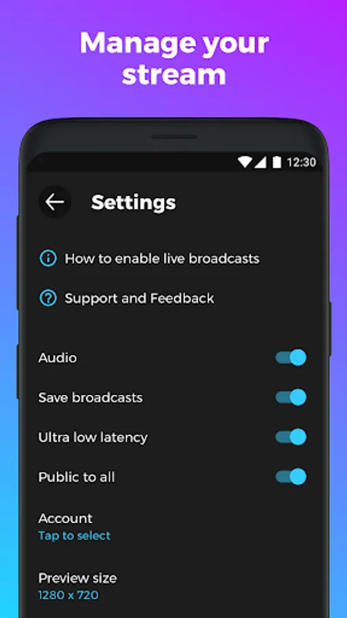 * Optimal auto-detecting broadcast presets that adjust to your device performance