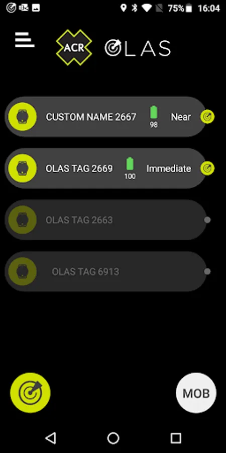 The ACR OLAS App turns your smartphone or tablet into a Man Overboard Alarm system that aids fast recovery to rescue your crew, kids, pets who have gone overboard. When the Free app is paired with either the ACR OLAS TAG or the ACR OLAS FLOAT-ON beacons, the OLAS mobile application technology detects a break in its ‘virtual tether’ to the ACR OLAS Tag and/or Float-On within 8 seconds of a transmitter going missing. The mobile phone(s) then sounds an alarm and records the latitude and longitude of the incident using the phone or tablets GPS. ACR OLAS then aids the crew with the MOB recovery by clearly directing them to the GPS location where the MOB occurred with clear visual signals and bearing data. ACR OLAS stores all location data and time of incident required by the rescue services.