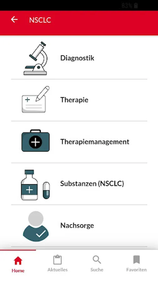 Currently the offer includes the area of the non-small cell lung cancer (NSCLC). Progress in this indication are examples of the rapid development in oncology. As more and more new therapies are approved in less time, there are treatment algorithms and therapy management in constant change. The app is constantly updated constantly and state-of-the-art always offers information. Other indications will follow shortly.