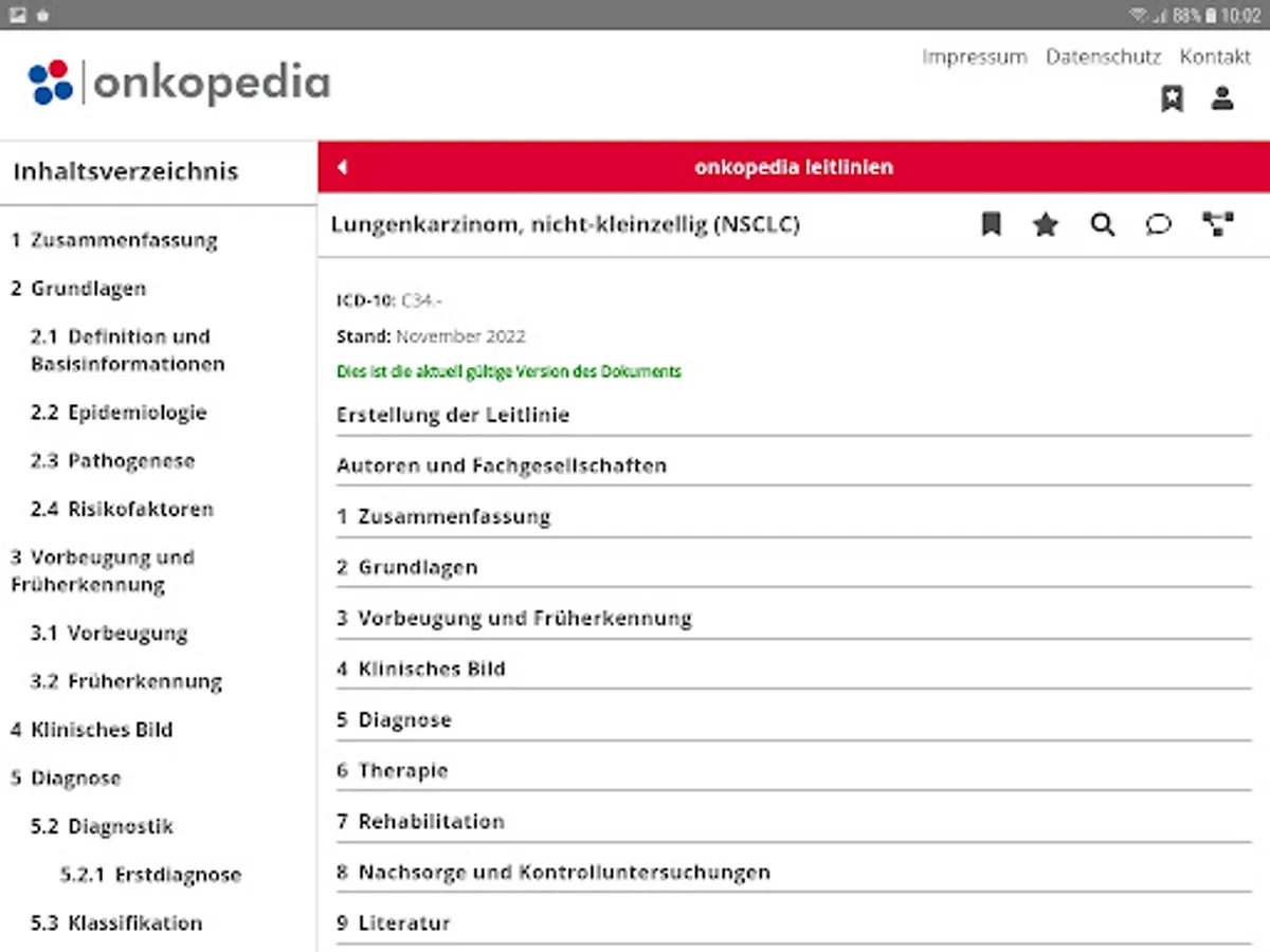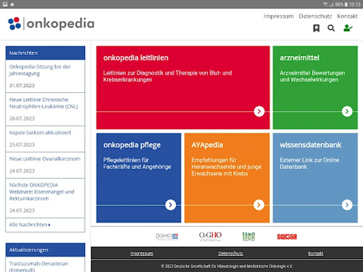 In addition to the medical guidelines, the Onkopedia Internet portal includes the following areas: