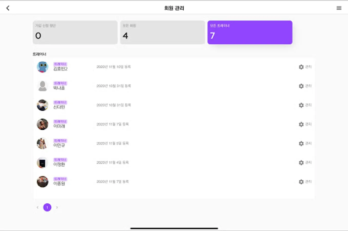 Through this application, you can manage the diet, water intake, exercise amount, etc. between the trainer and the studio member.
