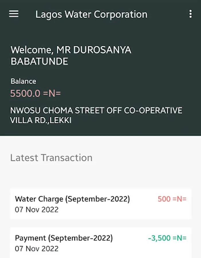 This is a one stop center for Lagos Water Corporation customers to view their monthly bills,readings and statements