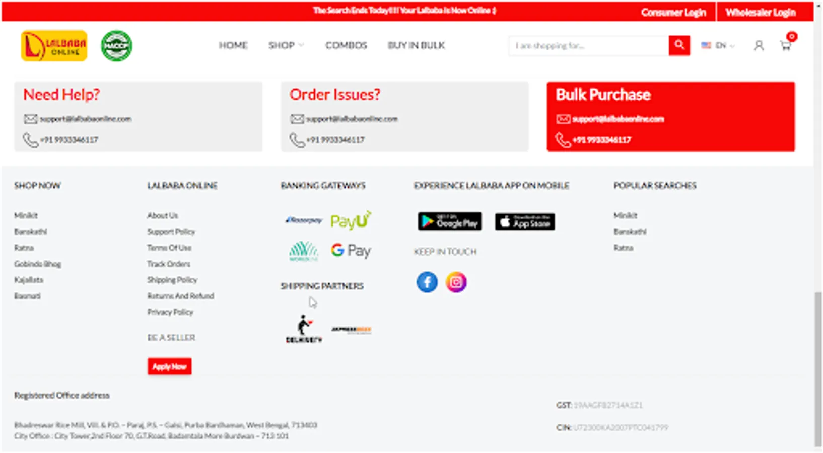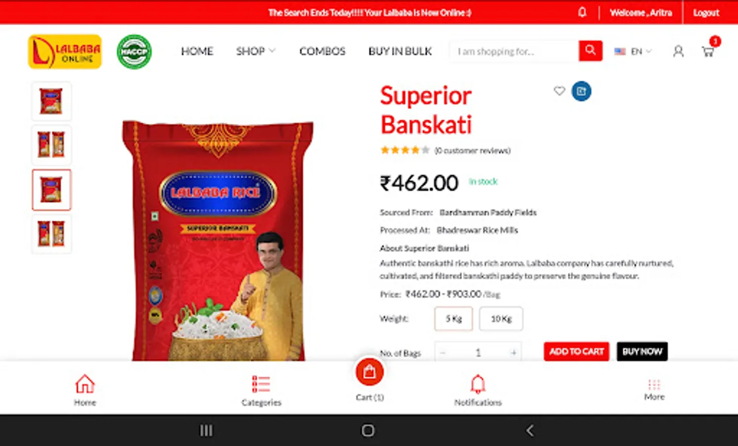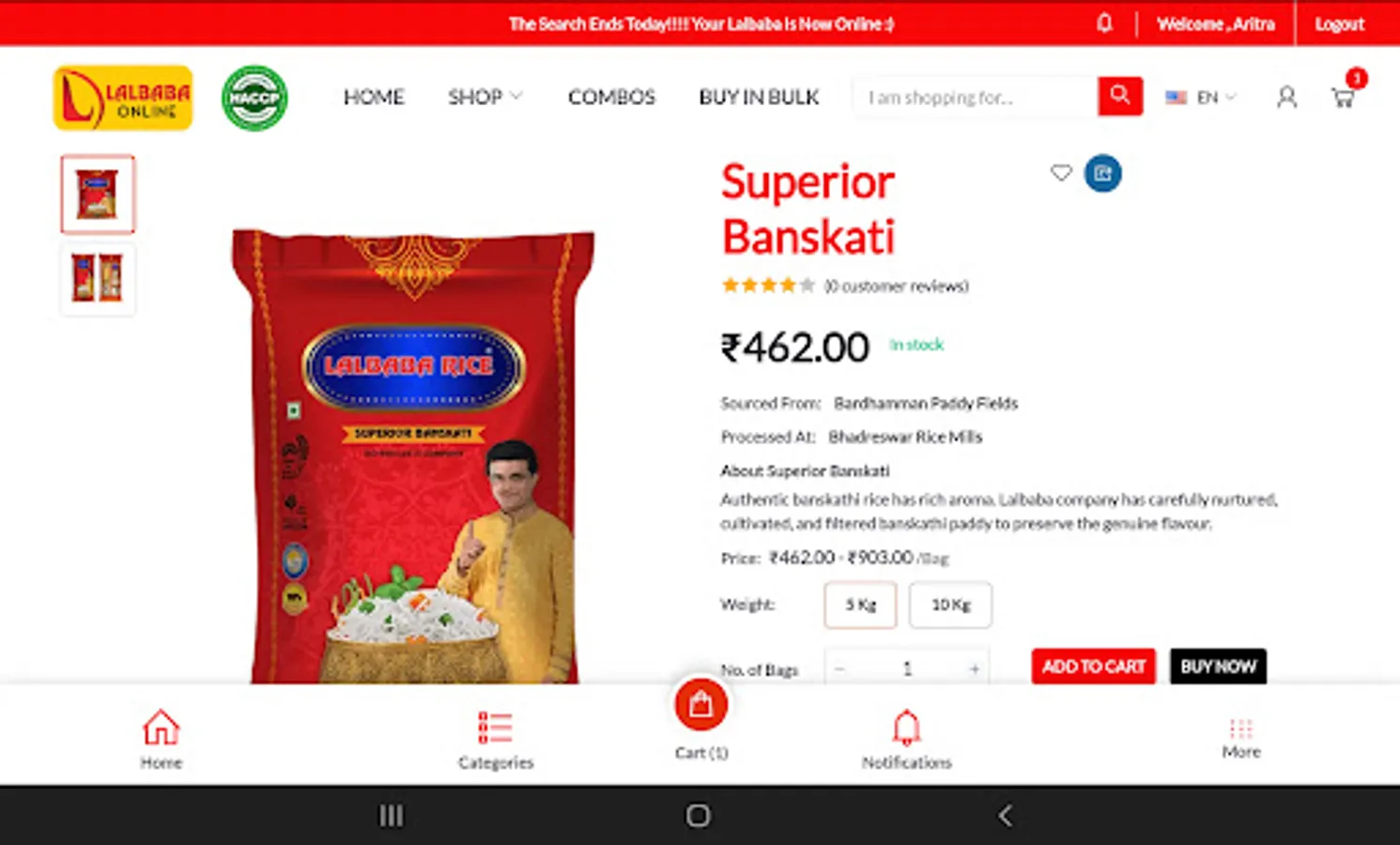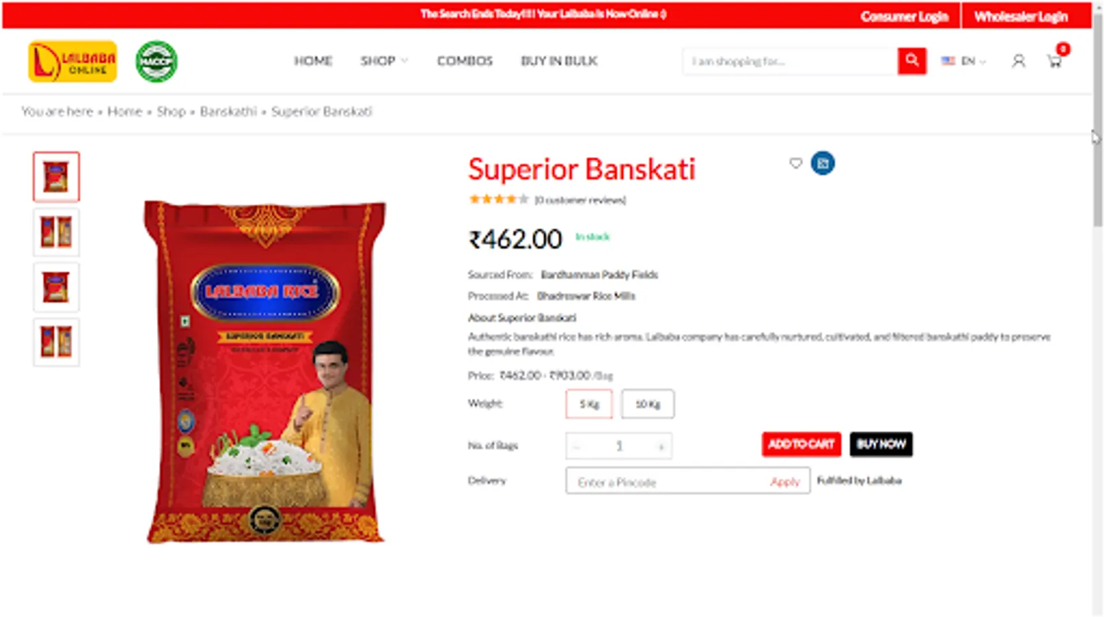 Lalbaba Online is the eCommerce platform for Bhadreswar Rice Mill - a leading producer and distributor of a premium range of rice.