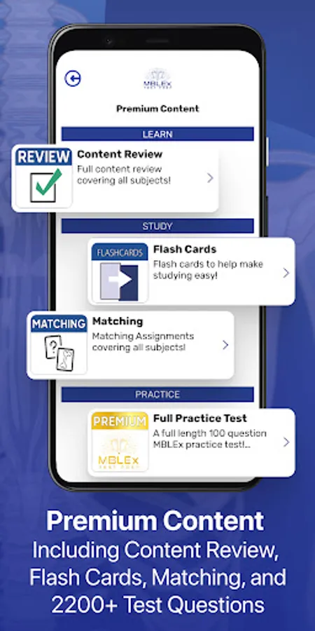 Upgrade to Premium to unlock a comprehensive content review covering every subject, over 1600 pre-made flash cards, and over 2200 practice test questions, the brand new matching assignment, and the complete MBLEx Test Prep Podcast archive!