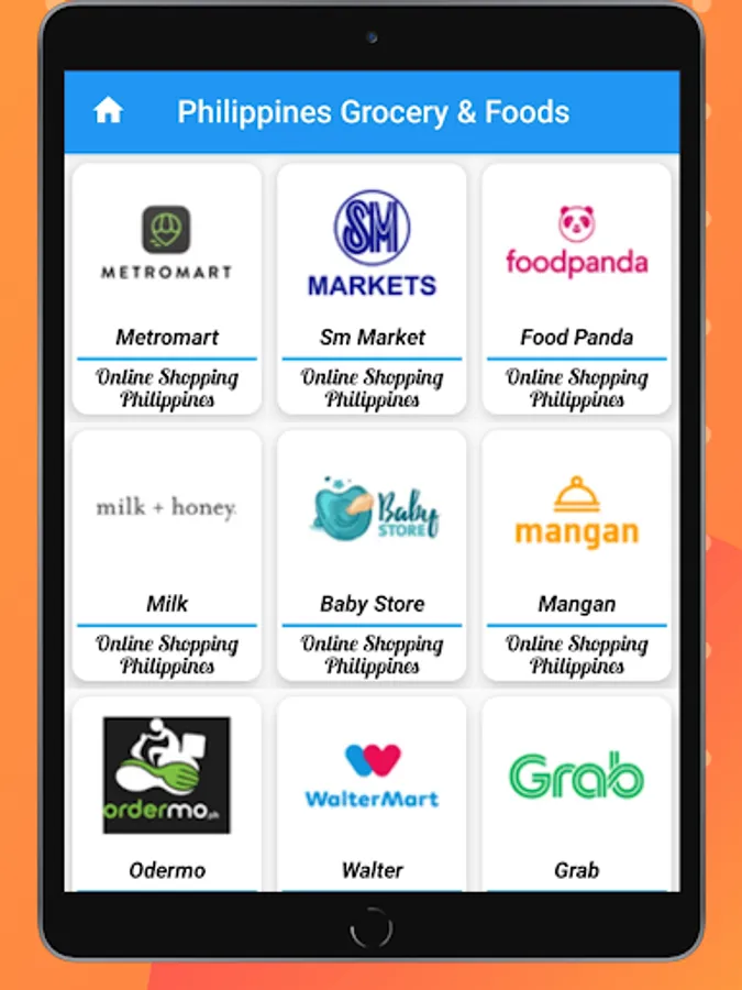 Philippines shopping app featuring top grocery & food stores in Philippines like Metromart, Markets, Foodpanda, Milk and Honey, Baby Store, Mangan, Odermo, WalterMart, Grab, Pushkart, Landers, Real Food, Mayani, The Green Grocer, Zagana Through this, you can get the best quality grocery and food items delivered to your home.