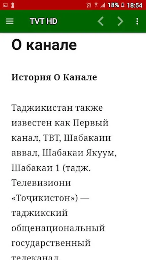 Tajikistan is also known as Channel One, TVT, Shabakai Avval, Shabakai Yakum, Shabakai 1 (Tajik. Television "Toҷikiston") - the Tajik national state television channel.