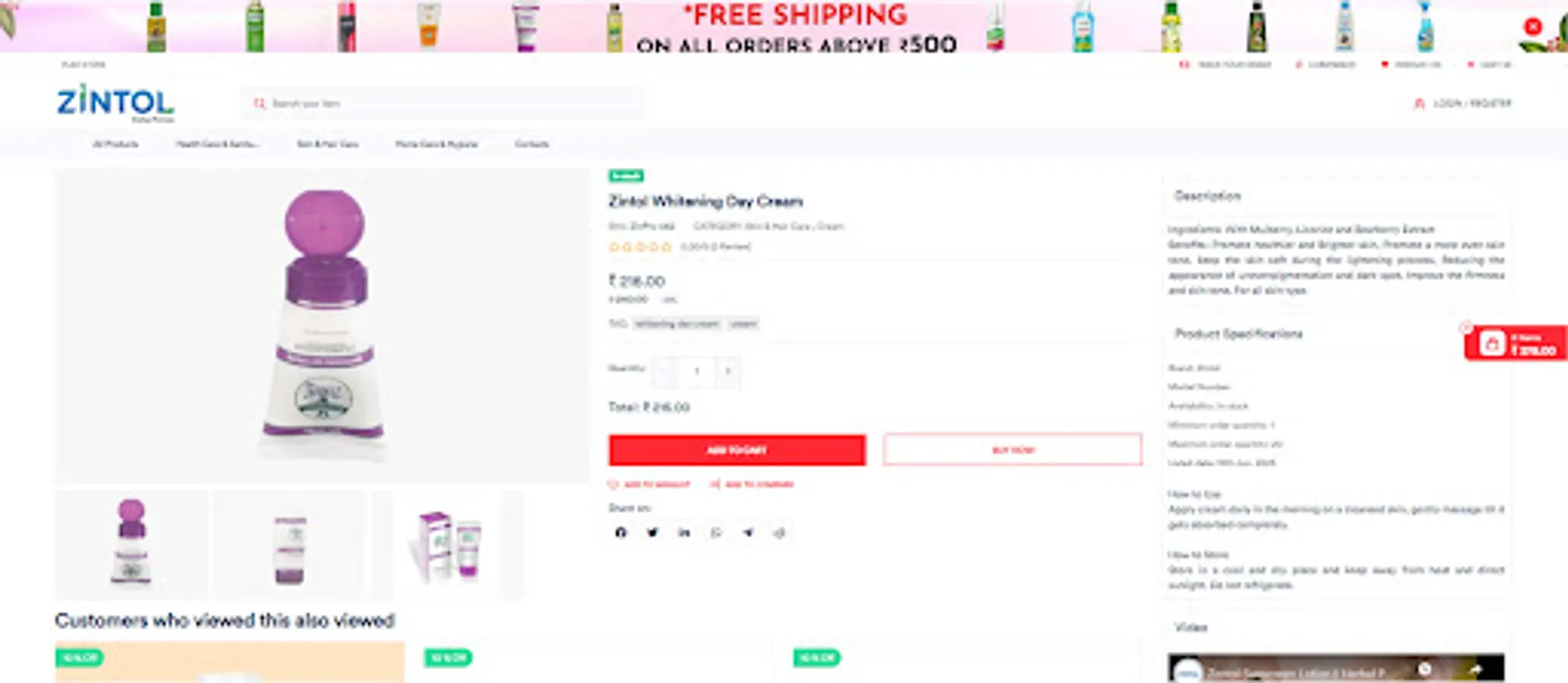 The current global economy is incorporating more and more e-commerce. Zintol - An Online Shopping Platform for different categories of items, for example, Skin & Hair Care, Healthcare & Sanitary to Homecare & Hygine at the best prices.