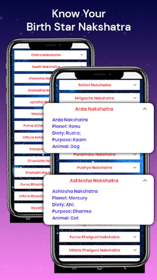 This app provides you with the best and most accurate details about your birth star, nakshatra and and also your rashi.