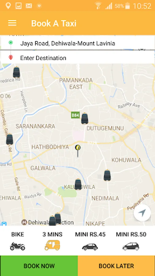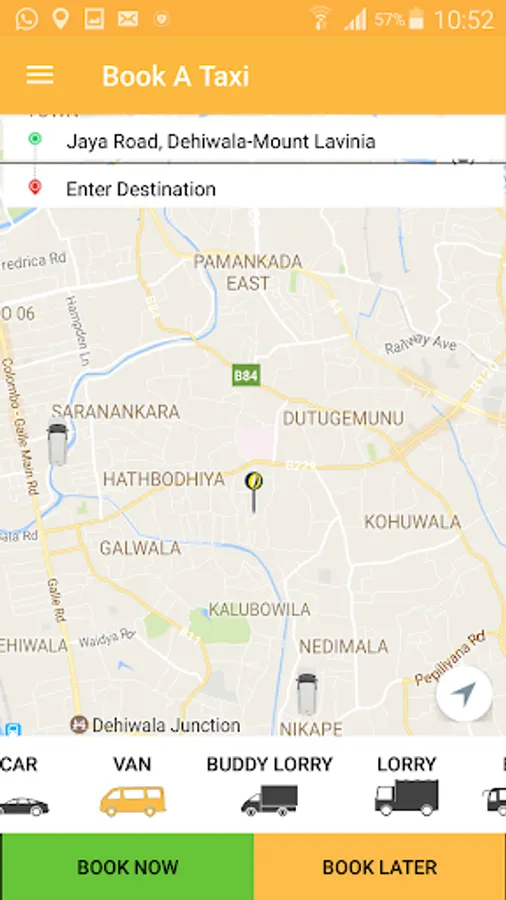 We are presently operating with 3 wheel, Mini cars, Cars, Van, Buddy Lorry, Lorry, Bus and Motorbike through online Cabs. See taxis around you on the Online Cabs map. Tap book now to get a taxi cab and watch on the map as it approaches! Rate your driver. Online Cabs app allows drivers and passengers connect directly by using their smart-phones. Online Cabs presently works for Colombo District.