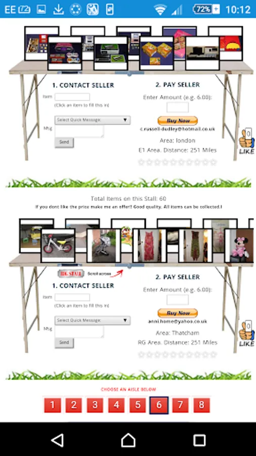This layout attracts more interest as buyers can rummage around, find a hidden treasure and then simply message sellers to discuss a sale. Contact boxes and sellers locations are underneath each stall. With our Quick Message feature, Buyers can quickly ask things such as: