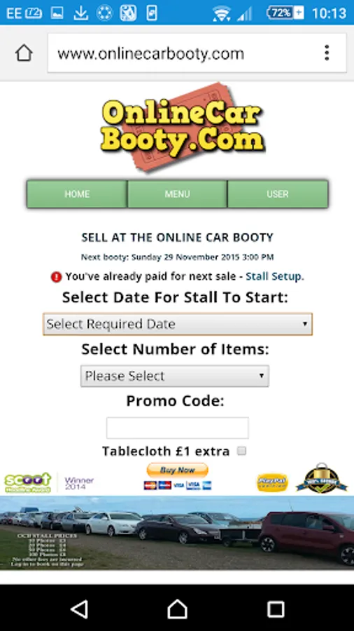 The Online Car Booty sale all takes place on the "GO BOOTING" page.