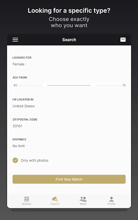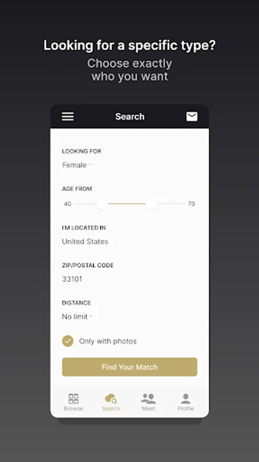 Create a quick personalized profile, add photos and describe your ideal partner.