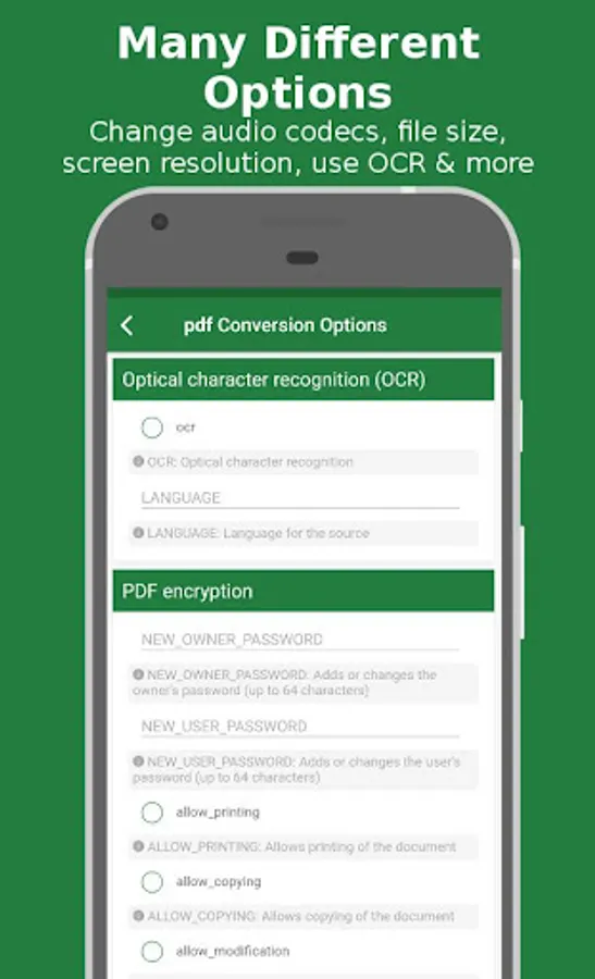 The File Converter app provides you with the same features you already know from the Online-Convert.com website:
