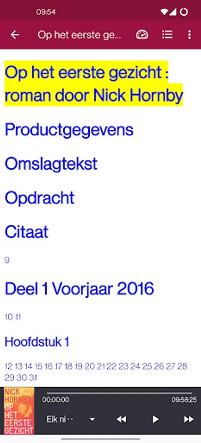 You can also place bookmarks so that you can easily find passages. The list of bookmarks can be found in the table of contents. You can easily delete created bookmarks. The Appropriate Reading app also remembers where you left off per title. So you can easily continue listening from where you left off.