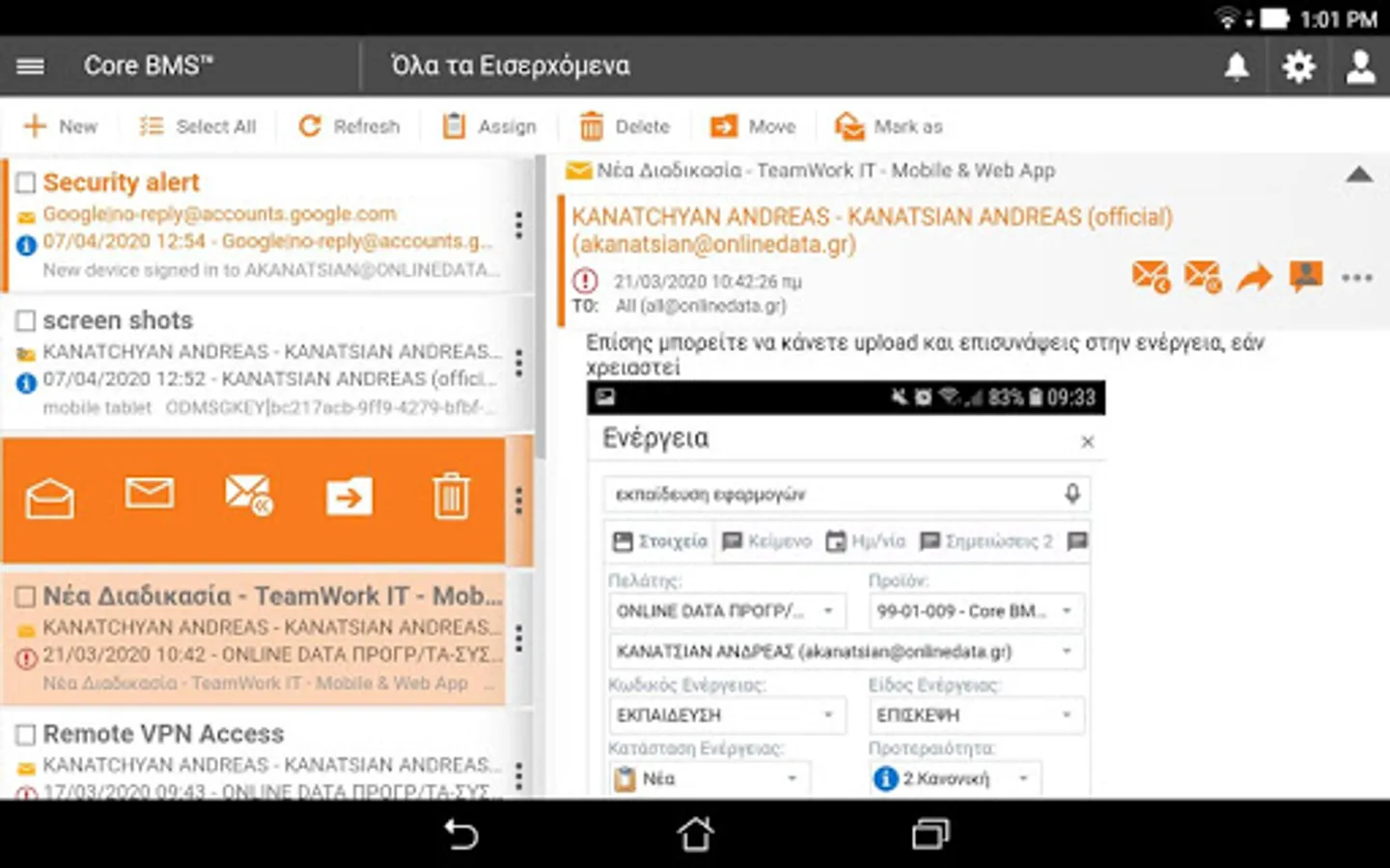 TeamWork IT is a smart-device application which allow users to connect Online Data’s Core BMS desktop applications and monitor