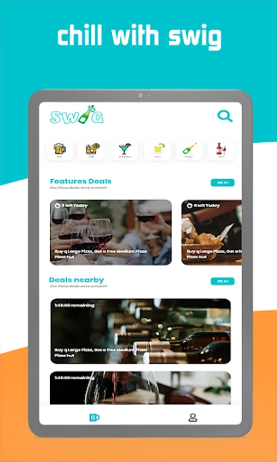 Do you want to go out with your friends, but don't have the budget? Are you tired of spending excessive amounts of money on outrageous drink prices? With Swig, you will be able to catch a vibe while saving money. Swig will show you every drink special happening in your area. With a wide variety of options from beer deals and margarita specials to dollar shots and bottle service discounts. Swig is location based so you will be able to see drink specials closest to your location as well as hot deals happening nearby! MUST BE 21+ TO USE THIS APP. At Swig, we strongly promote drinking responsibly. Just because you will be saving tons of money on drinks does not mean that you should overindulge. We also do not condone driving while under any sort of influence. Please use this app responsibly and enjoy the savings!