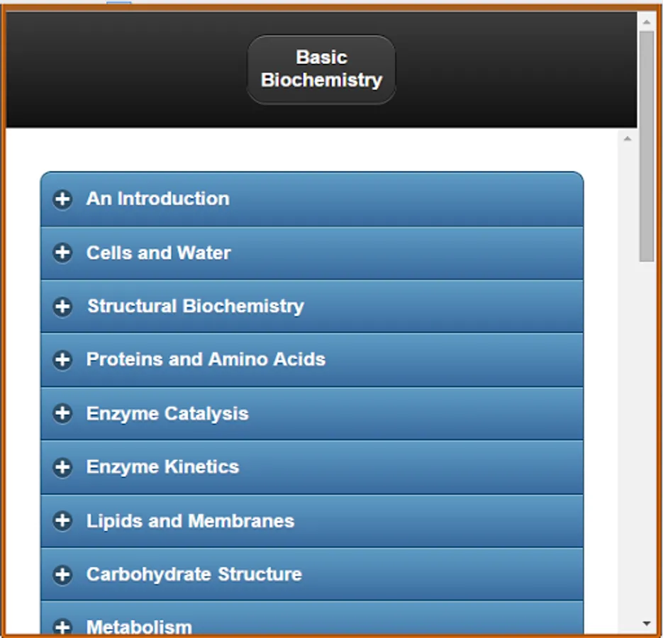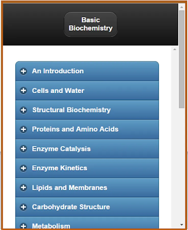 # The basic topics of Biochemistry are included briefly in this app.