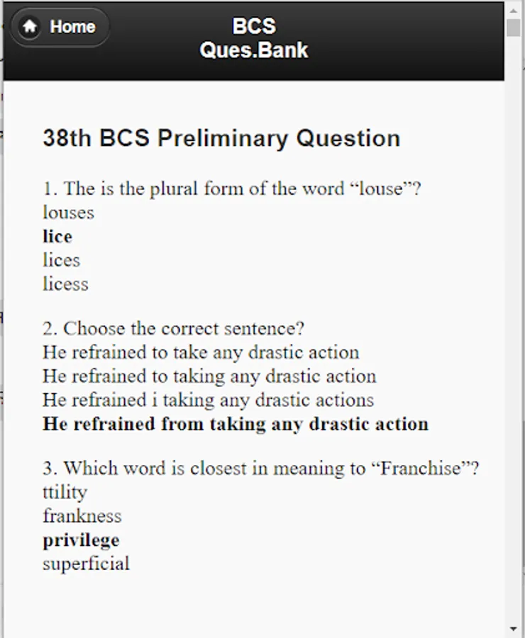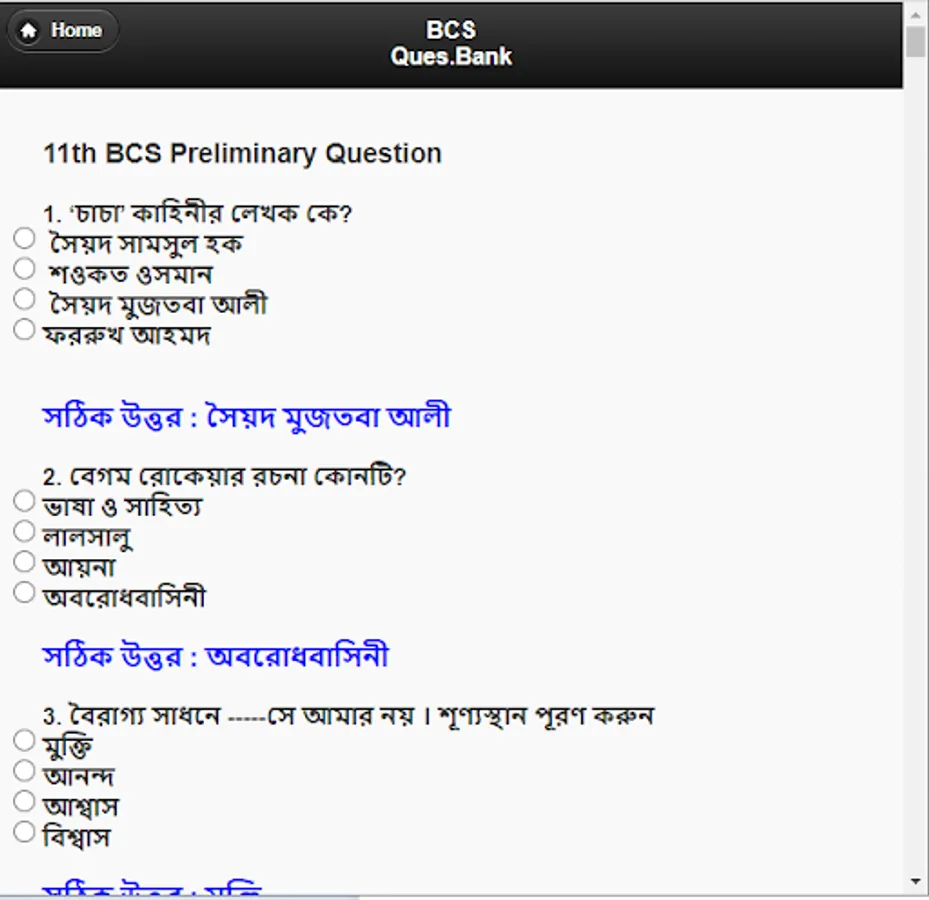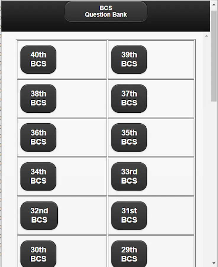 BCS is the largest public examination conducted by Bangladesh Public Service Commission to recruit people to Bangladesh Government Civil Services. This test examines lots of qualifications. The candidates have to know many things to overcome this exam. Before starting the preparation for this exam one has to know the question pattern of this exam. There is no alternative of previous question papers for getting the idea of questions pattern. I have prepared this app so that the candidates can get the idea of BCS questions pattern. The app is enriched with the BCS preliminary question papers from 10th to 40th exam. I hope it will help the reader very much for the BCS preparation.
