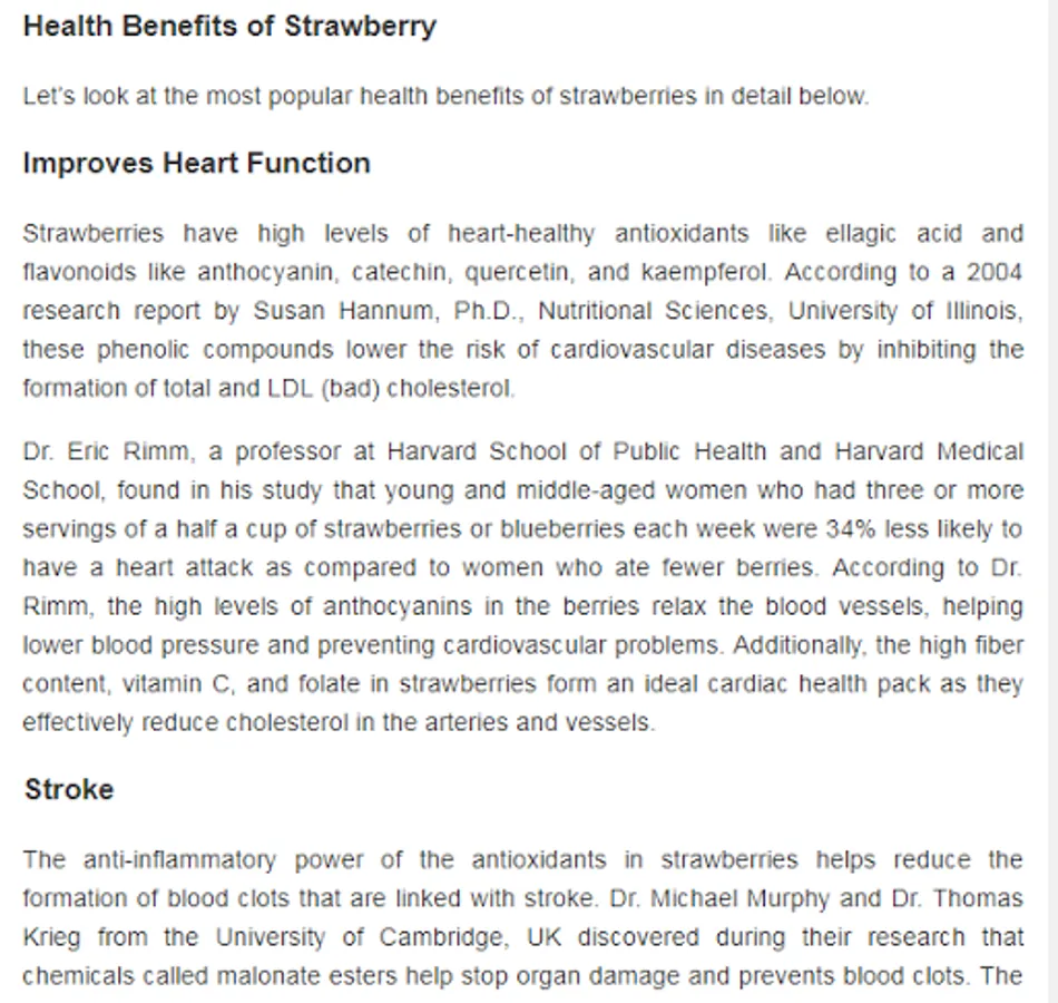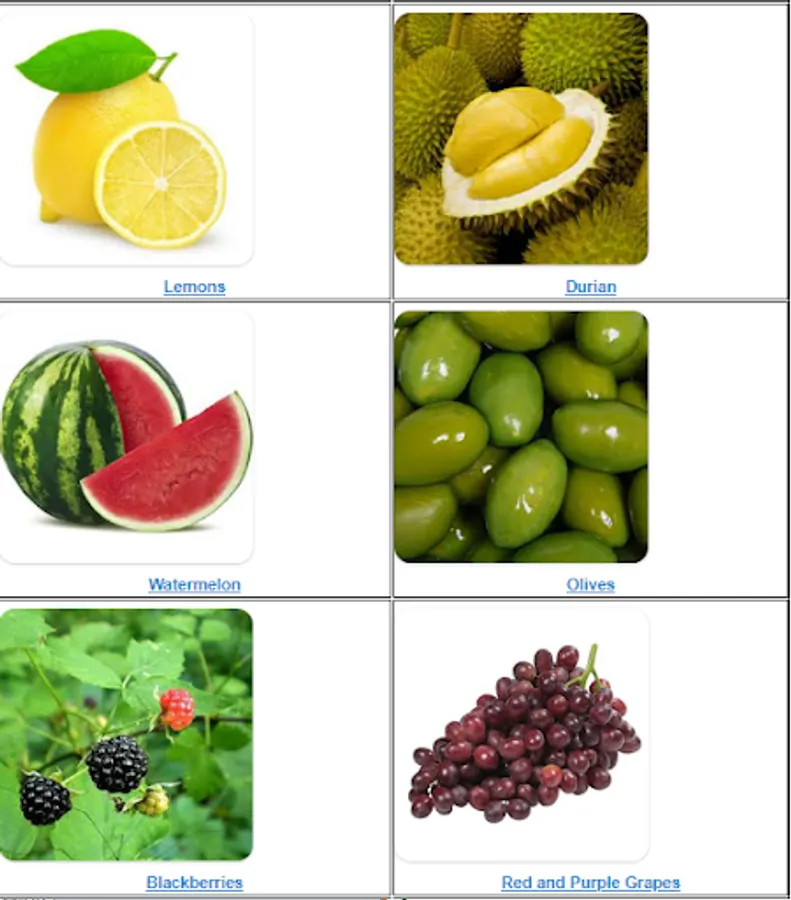 # description of many fruits,