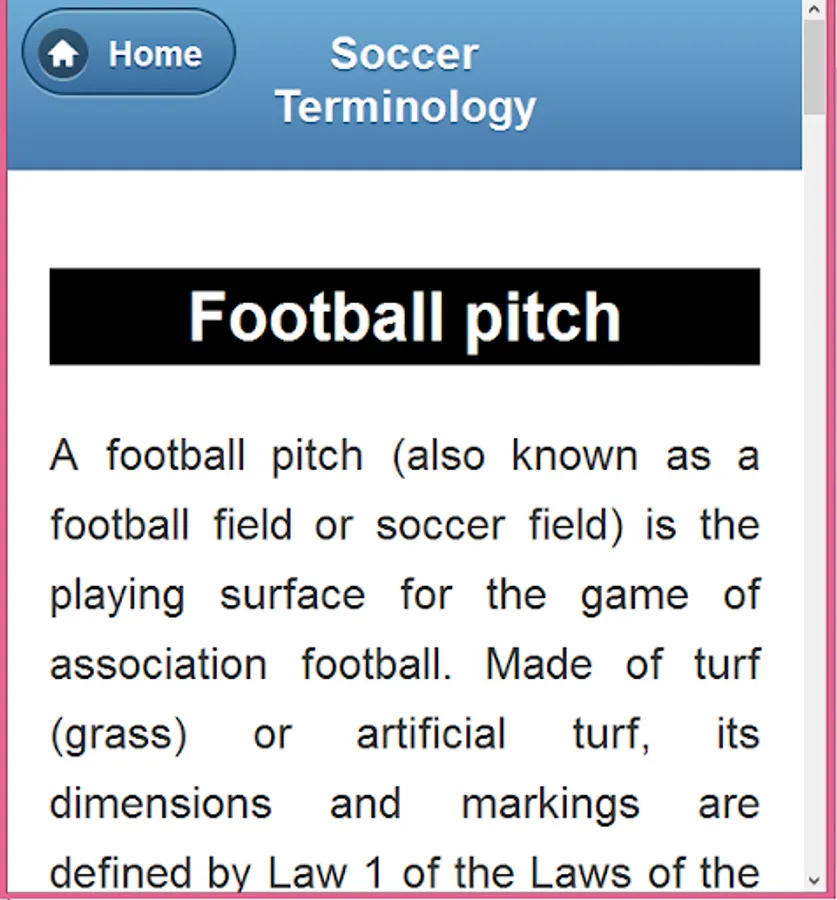 Soccer, also called Football in South Asian countries is the most popular game in this earth. There are many Terms and terminologies in this game. Some are known and some are not commonly known to the spectators. The spectator who knows the terms and terminologies of the game enjoys much better than the spectator who doesn’t know.  In this app we tried to illustrate the idea of this game in easy language.  We hope this app will help the users to know about the Game Soccer.