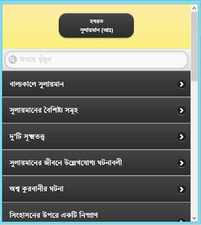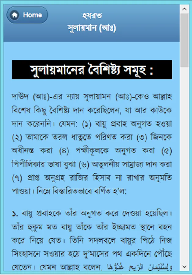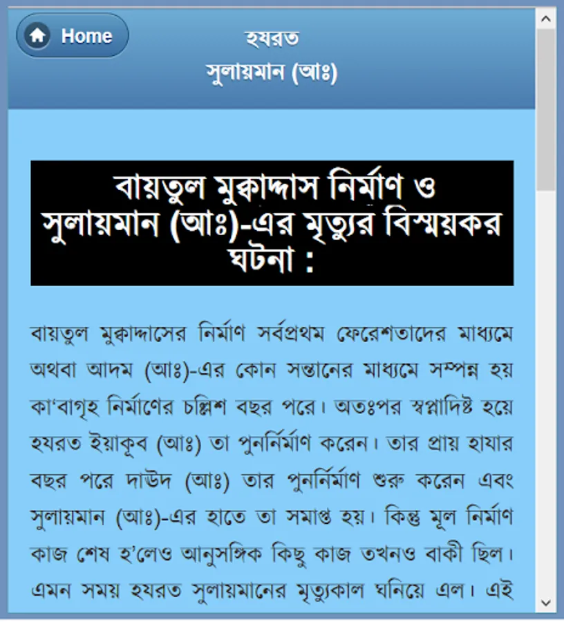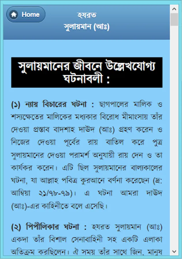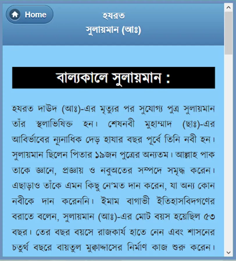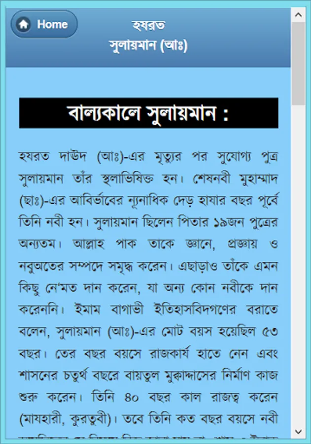 Four Alam Badsha Prophet Solomon (peace be upon him from his childhood :) chilela special knowledge. Many of the samples showed that he was still a child. Eleven children were recognized as the best because the King, and later he received the title of world's best king. Wise, wise, and in particular the ruling Sulaiman (A :) biography of this app has been developed. He is associated with each of her events, such as childhood, haruta and marutera story, given tohamat, the horse sacrifice, the temple construction and mukbaddasa described his death as a wonderful event. He could understand the language of all creatures, even the wind and could not control. There are many things to learn from his biography, as well as educational and information. He considers every way to learn about and rumors rather than the actual data for this app was created. This app is like having a collection.