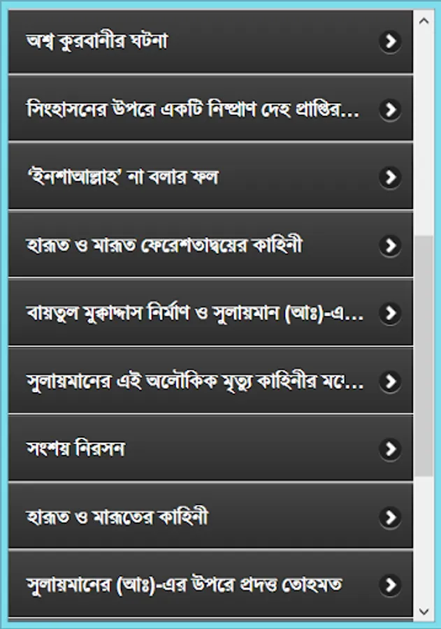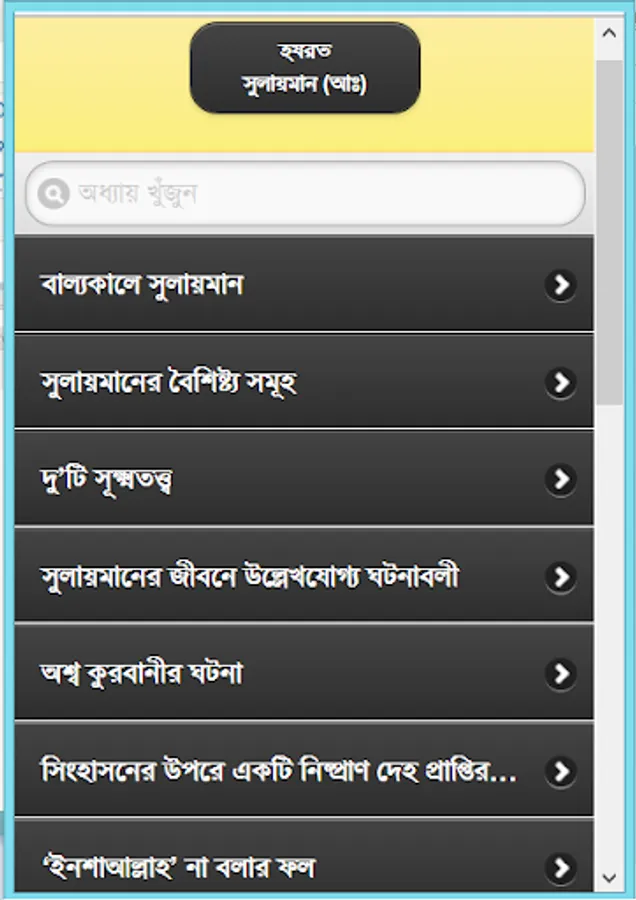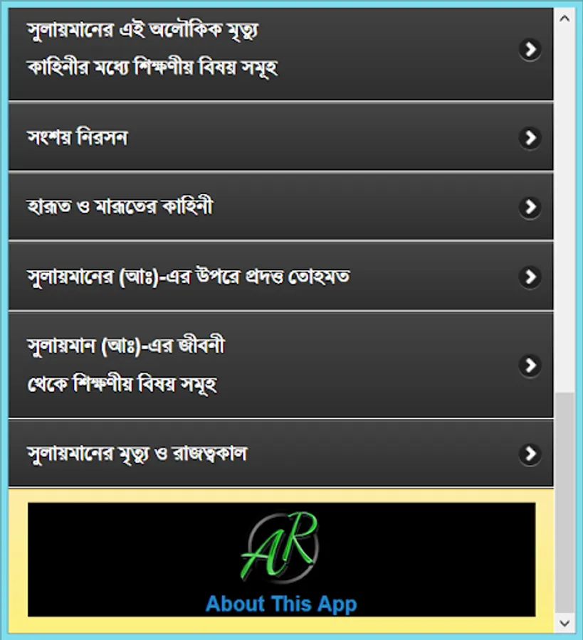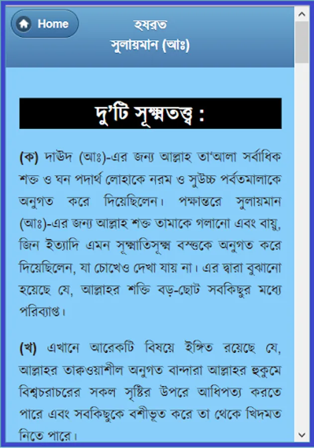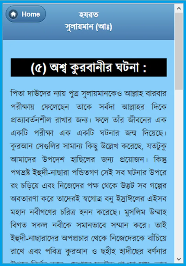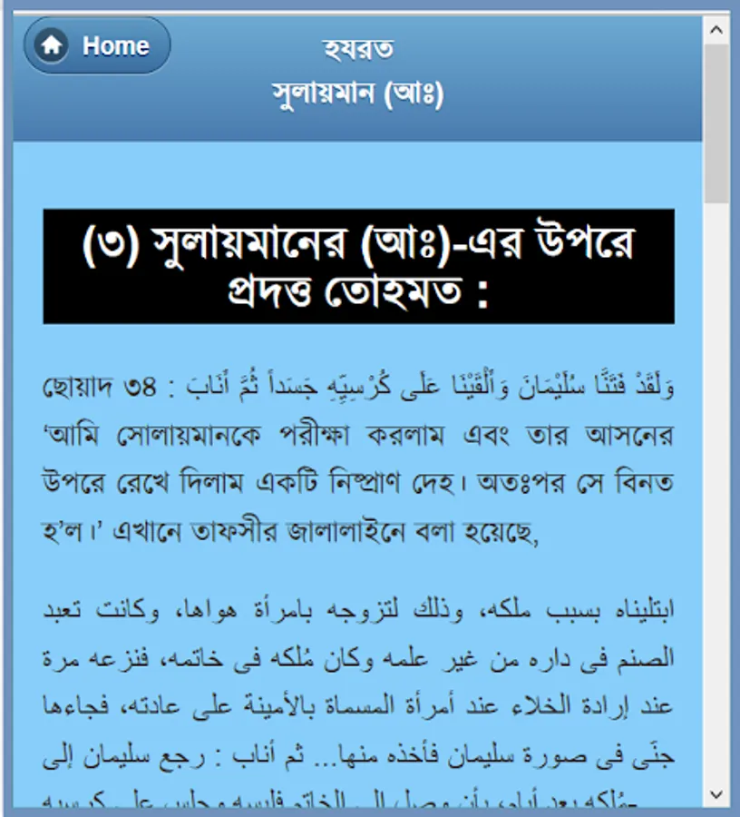 Four Alam Badsha Prophet Solomon (peace be upon him from his childhood :) chilela special knowledge. Many of the samples showed that he was still a child. Eleven children were recognized as the best because the King, and later he received the title of world's best king. Wise, wise, and in particular the ruling Sulaiman (A :) biography of this app has been developed. He is associated with each of her events, such as childhood, haruta and marutera story, given tohamat, the horse sacrifice, the temple construction and mukbaddasa described his death as a wonderful event. He could understand the language of all creatures, even the wind and could not control. There are many things to learn from his biography, as well as educational and information. He considers every way to learn about and rumors rather than the actual data for this app was created. This app is like having a collection.