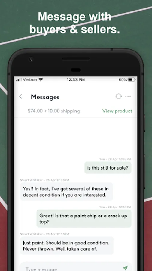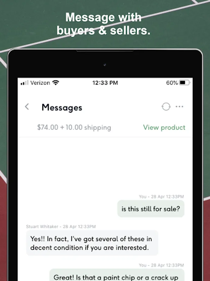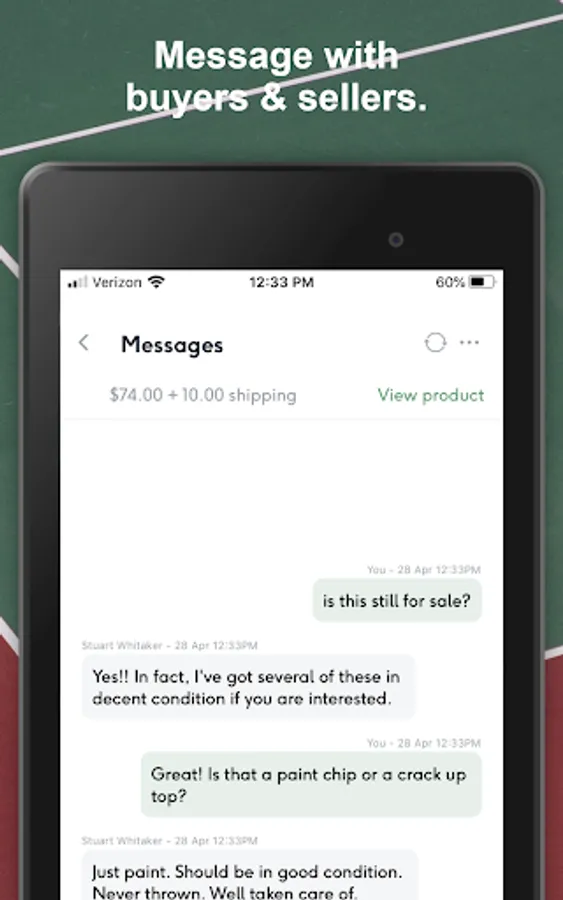 - Message sellers with questions about listings.