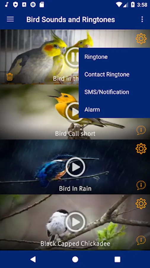 You can Listen your favorite Bird Sounds, Calls and set as your Contact Ringtones