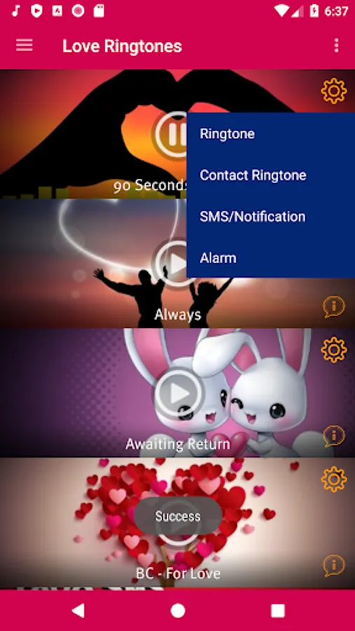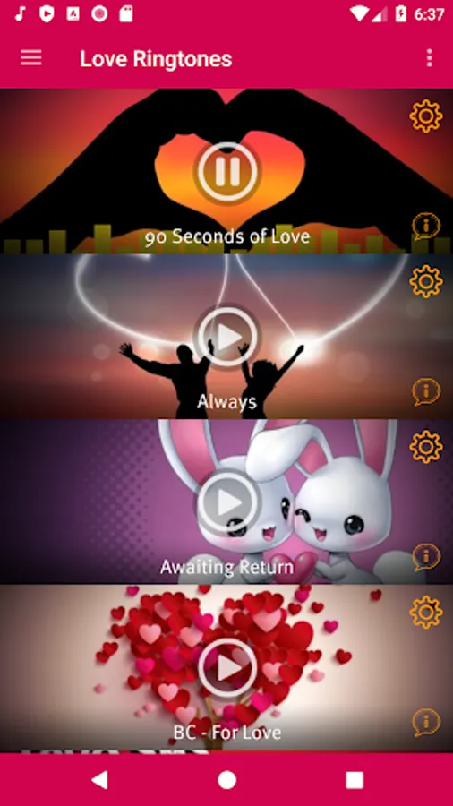 Android is a trademark of Google Inc. Love Sounds & Ringtones is not endorsed by or affiliated with Google Inc.