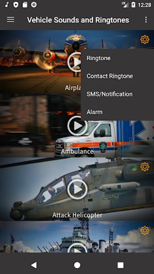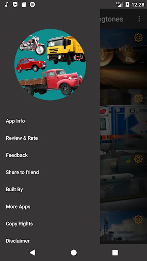 User can listen the sounds of specific vehicle and if user interested on the it can set as Ringtone,Alarm-tone and Notification tone from the App.