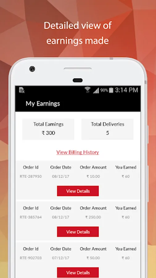 Check earnings, history of the deliveries made