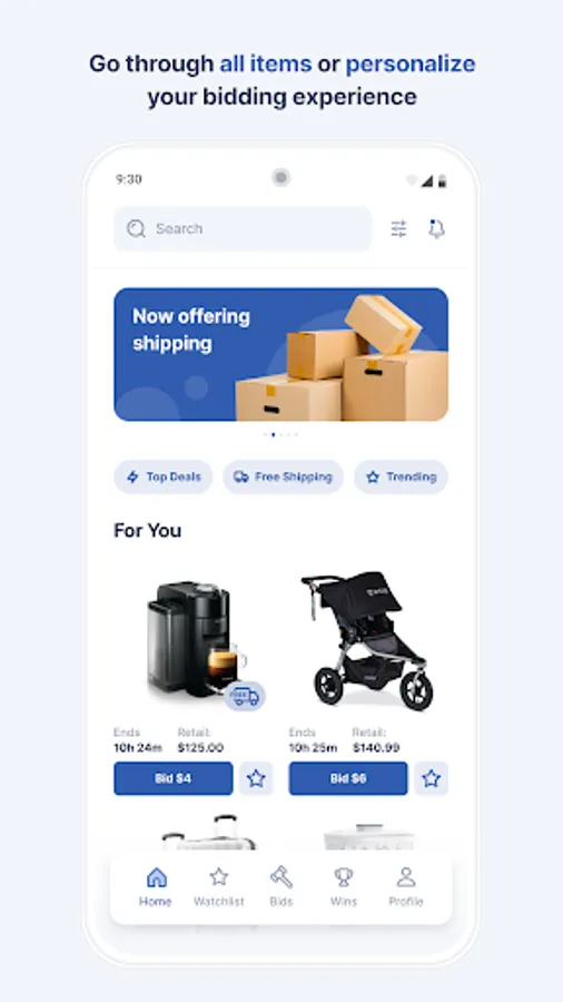 Online Liquidation Auction sells tens of thousands of items under retail cost each week. We give the common online shopping experience a live auction feel. Customers can freely place bids on items that our team inventories and photographs. We preview all items in depth for our customers, adding to the accessibility and affordability of our auction. Our app is designed to provide clarity and convenience, making for the best bidding experience and the best deals!