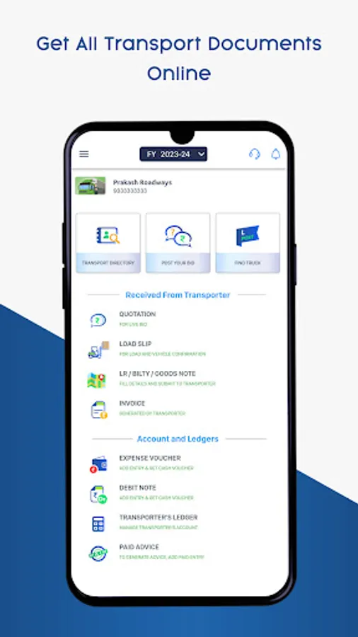 First time in India introducing 2-way transport documentation app. Now manage your complete transport business need on this one-of-a-kind solution where you can view and share all the transport documents like LR/Bilty, Invoices, Loading Slip, Payment Advice and Quotation to anyone from anywhere via mobile and web login. The consignor can also manage the transport ledger (Transport Accounting) and provide payment advice.