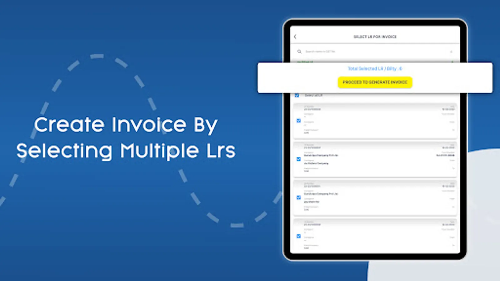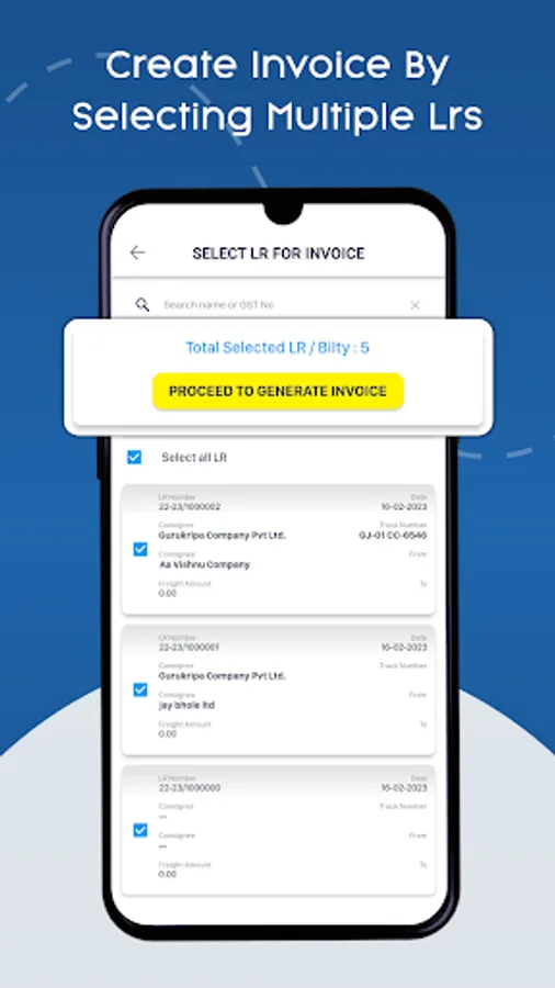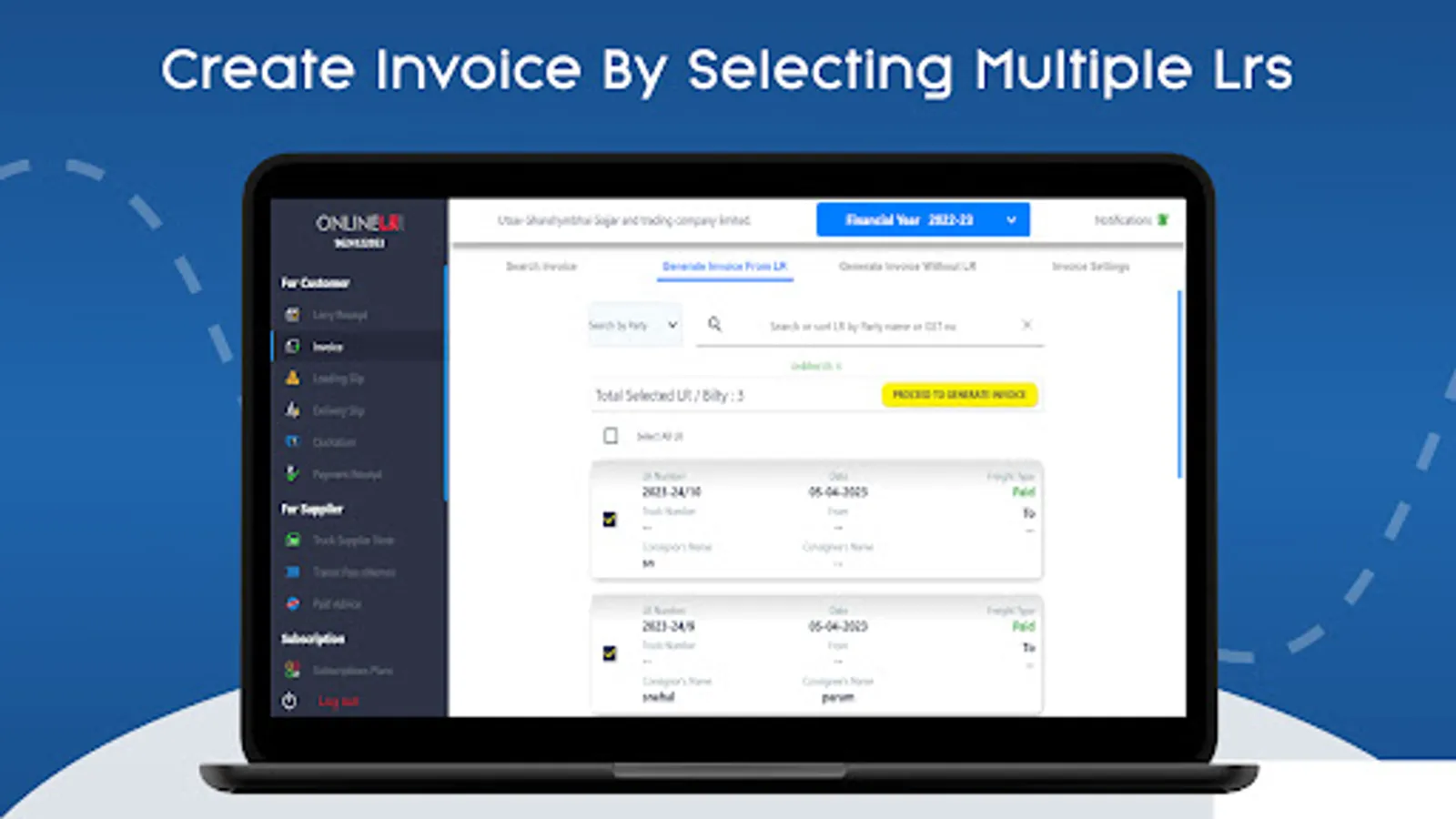 Make truck invoice of freight quickly by selecting list of LR / Bilty