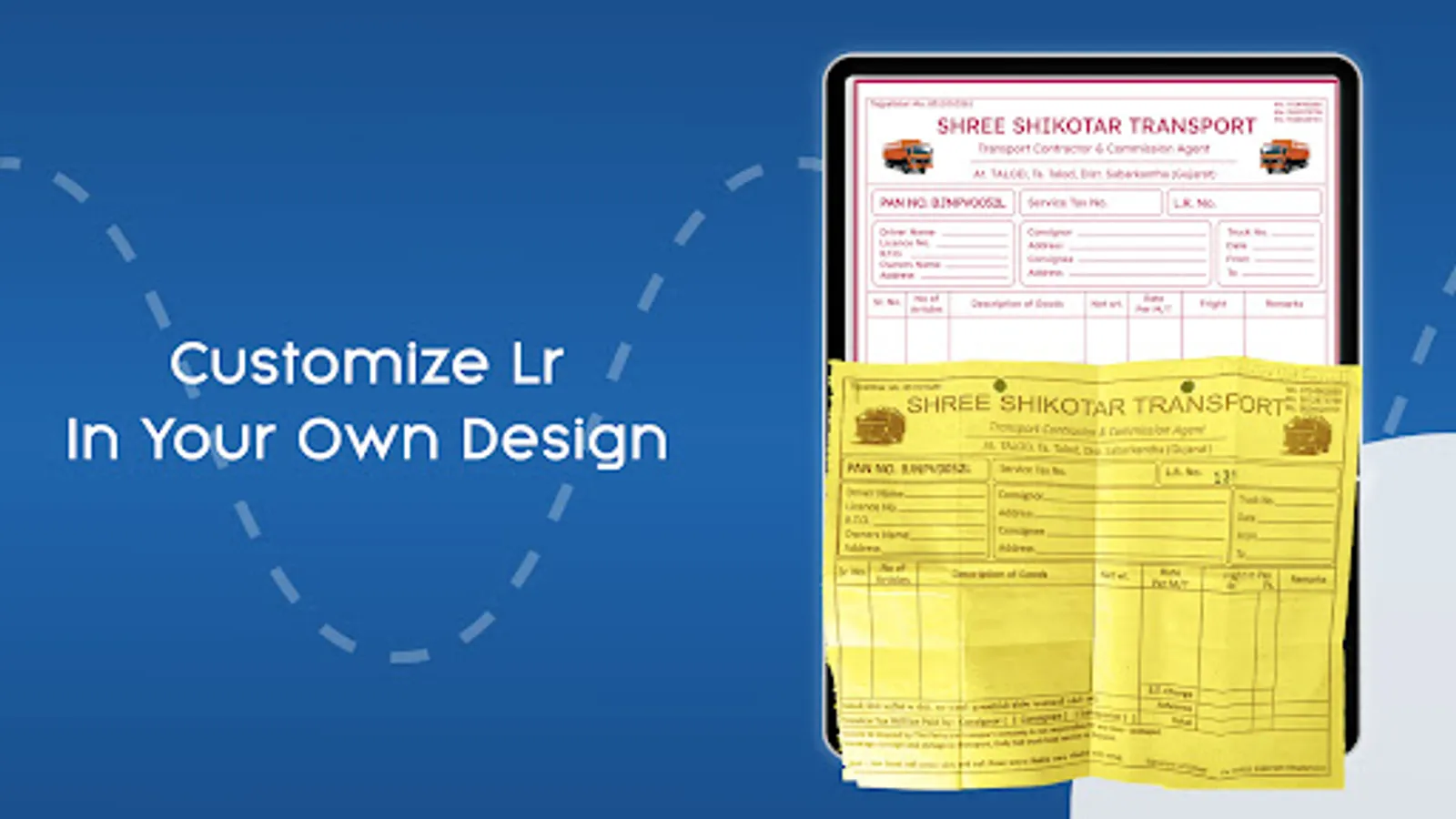 Create Professional Bilty (LR)/ bilti / LR(Lorry receipt) / transport gr with personalized greetings/festival message/company logo/tagline /background/ photo / docet number / get your personal BiltyBook ( Transport Bilty/LR )