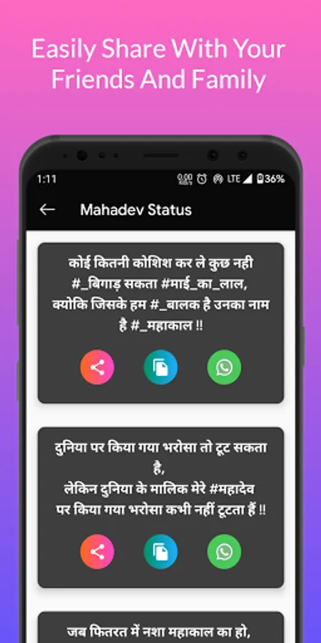 🔸 It let you share your beautiful greetings with Mahadev image status and Quotes to your friends. Supports multiple social media sharing specially for Whatsapp, Facebook and Instagram.