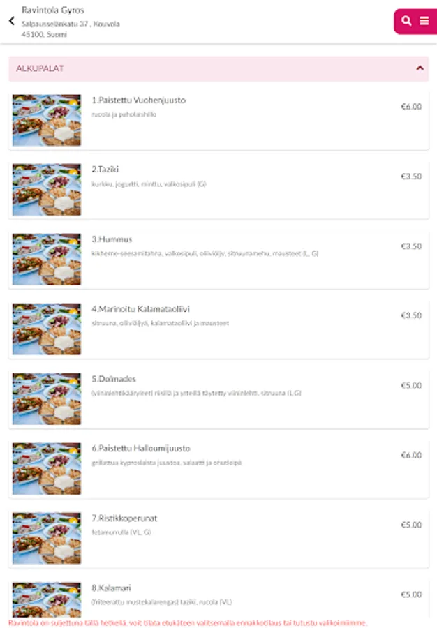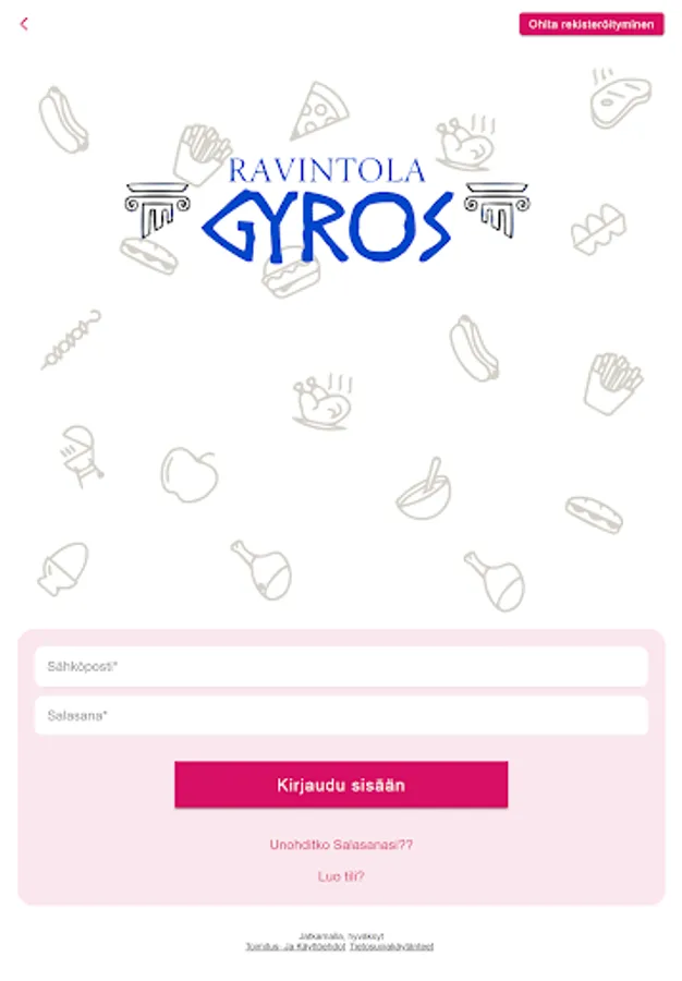 Jos sinulla on kysymyksiä liittyen palveluun voit lähettää meille sähköpostia osoitteeseen info@ravintolagyros.fi