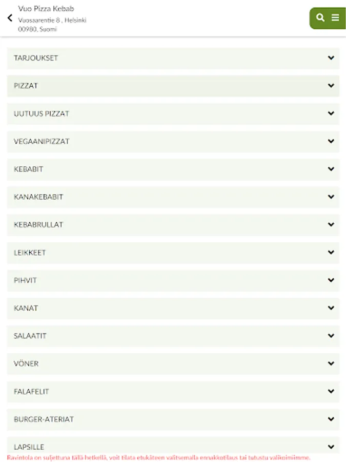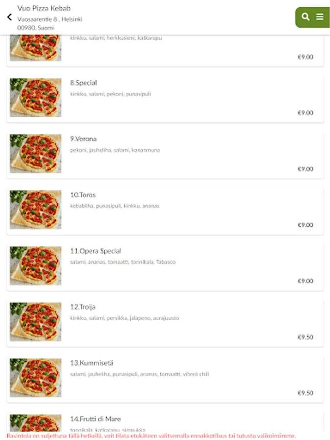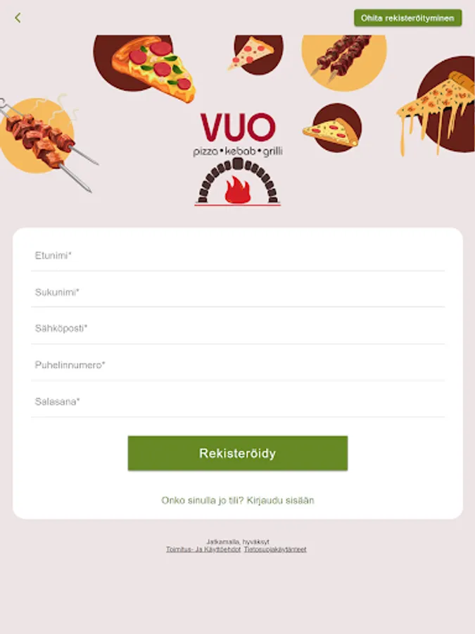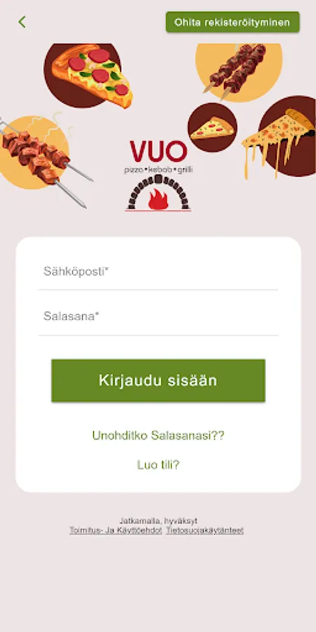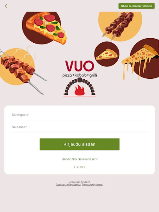 If you have any questions regarding the service, you can send us an email to [info@vuopizzakebab.fi] info@vuopizzakebab.fi
