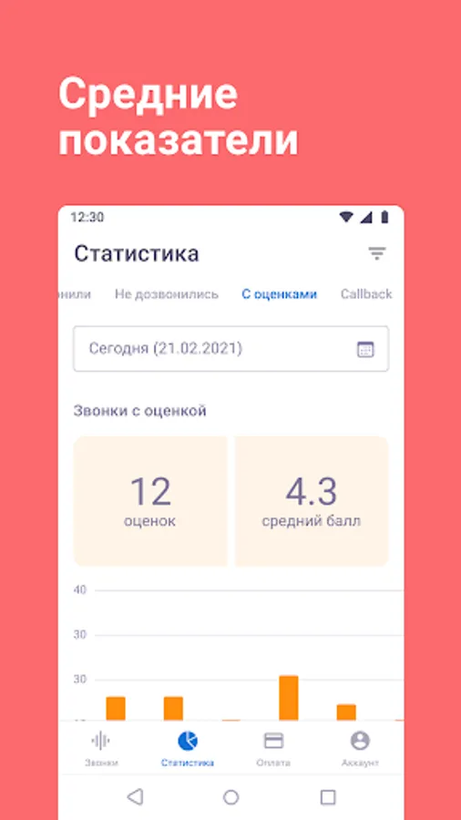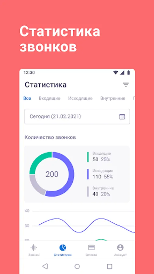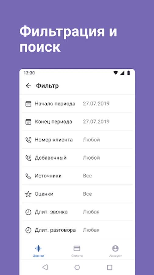 • filter calls by type, duration, date, employee, client