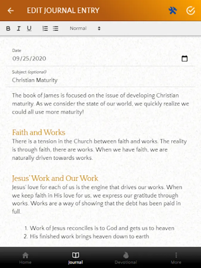 Your OnlinePrayerJournal also comes with a daily memory verse and a daily devotional to stimulate your journaling. All you have to do is open the app for daily memory verses, daily devotionals, and your feature-rich journaling app: