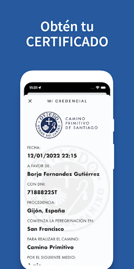 This digital credential made expressly for the FITUR 2022 Tourism Fair, contains the basic aspects of the Official Digital Credential of the Camino Primitivo.