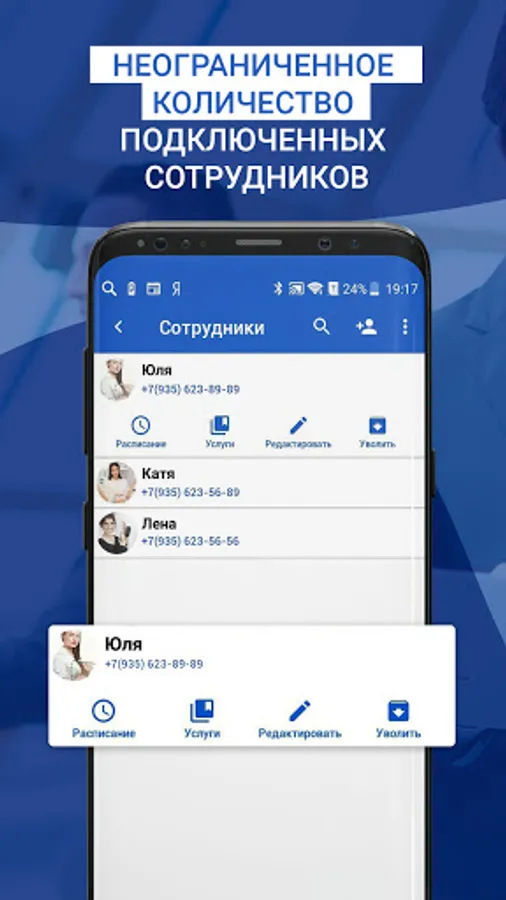 ✅ Tools for working with employees allow you to flexibly set up an employee's schedule and recording at a fixed time.