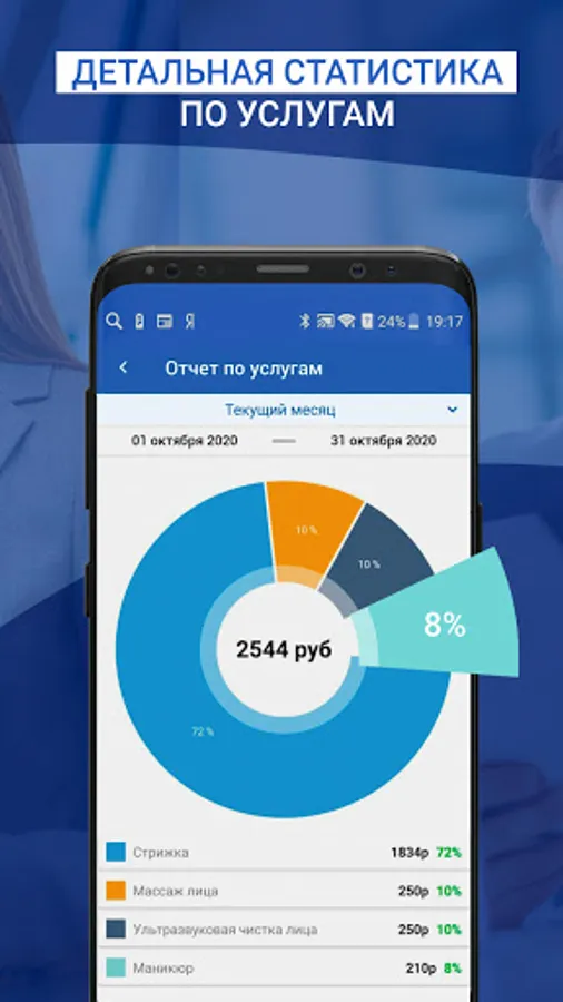 The application allows you to keep track of and record customers, prepare financial statements, manage the schedule of employees and mailings , so that you always keep the situation under control!