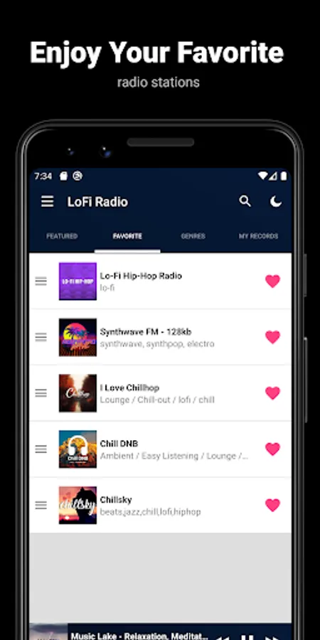 - Favorites list to pick the stations you like the most and enjoy listening to