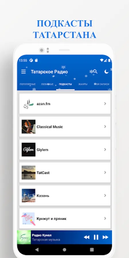 Our application provides the ability to listen to Tatar radio online anywhere in the world. Radio Tatarstan, Kazan radio, Bashkortostan radio, Ufa radio and many other radio stations are available in one application. You can enjoy Tatar music online, listen to Tatar songs and folk melodies, immerse yourself in Tatar culture and history.