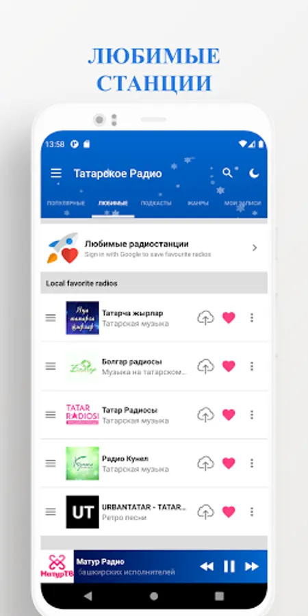 Our application is a great way to get acquainted with Tatar culture and music, as well as learn about the latest events in the region and the world. Listening to Tatar radio online has become even easier with our application. We are sure that our application will appeal to everyone who is interested in Tatar culture and who likes to listen to high-quality music. Install our app and enjoy your favorite radio stations and songs anytime