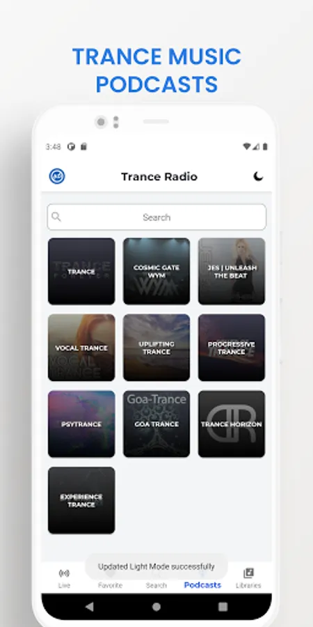 All radio stations are sorted by the following genres: Vocal Trance, Progressive, Psychedelic, Psytrance, Goa.