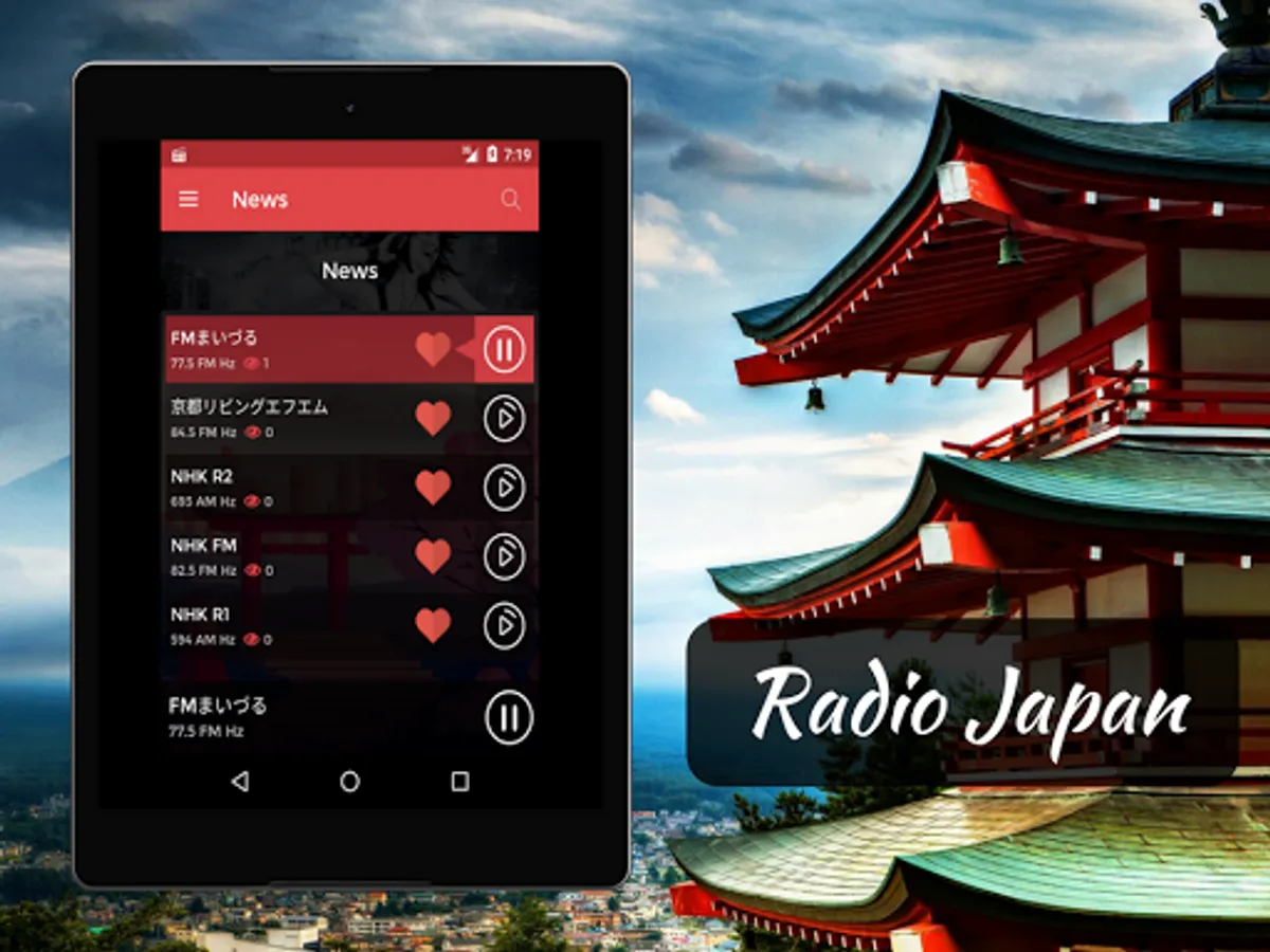 Don’t miss all the radio stations that this amazing app brings to you, there are more than 100 radios FM and AM from japan.