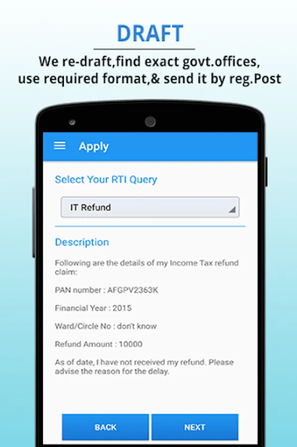 1. After you file the application, we have a team of RTI experts and lawyers who will go through your RTI application and draft it as per RTI best practices.