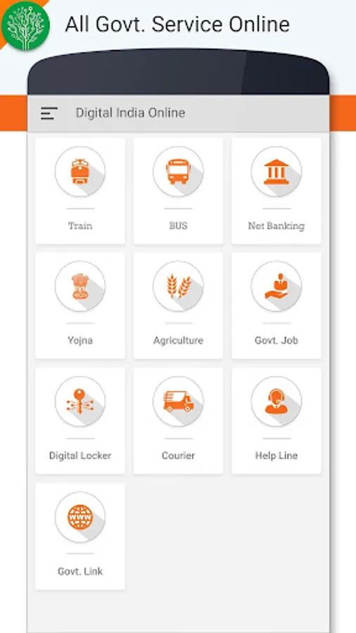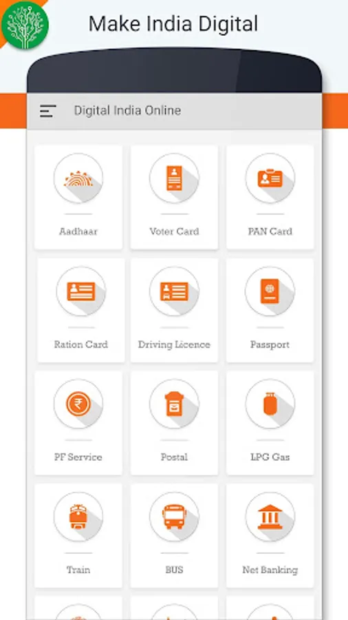 Online Seva : Digital Services India App provides like Aadhar card, Voter id Card, Pan Card, Ration Card, Driving Licence, PF Service, Postal Service, LPG Gas Services, IRCTC, Bus Service, Net Banking, Government Yojana, Agriculture Service, Government Job Service, Digi Locker Service, Indian Railway, RTO Vehicle info Services, Courier Services, Emergency Help Line Numbers, Government all Website.